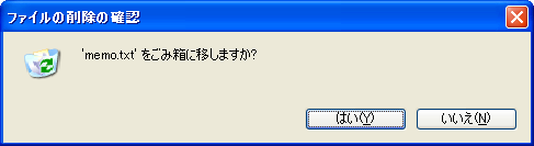 ![狼少年 (緊急時) 「'memo.txt' を削除しますか? [はい] [いいえ]」というダイアログボックス](winxp-delete-confirm.png)